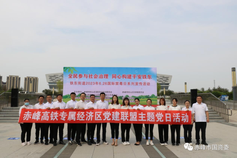 6月26日,赤峰市高鐵投資開發(fā)有限責(zé)任公司黨支部牽頭赤峰高鐵專屬經(jīng)濟(jì)區(qū)黨建聯(lián)盟各成員單位,參加了松山區(qū)鐵東街道舉辦的主題為“全民參與社會(huì)治理,同心構(gòu)建平安鐵東”第36個(gè)國(guó)際禁毒日系列宣傳活動(dòng)。