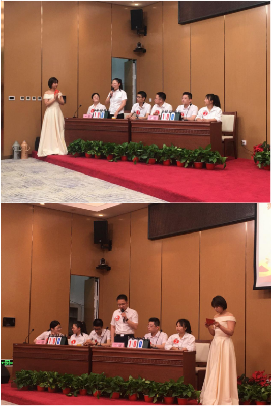 本次黨史知識競賽緊緊圍繞百年黨史和黨風(fēng)廉政建設(shè)展開,設(shè)置了個人必答題、小組必答題、搶答題、加賽題等多個環(huán)節(jié)?;顒又校F(xiàn)場參賽選手們認(rèn)真思考、沉著應(yīng)答,場上積分你追我趕,幾度膠著,現(xiàn)場搶答聲音此起彼伏,現(xiàn)場觀眾掌聲呼聲不斷。在小組晉級賽時,還出現(xiàn)了平分加賽的現(xiàn)象,現(xiàn)場氛圍緊張激烈,選手們表現(xiàn)斗志昂揚(yáng),團(tuán)隊(duì)配合密切,充分展現(xiàn)了集團(tuán)廣大黨員職工扎實(shí)的理論基礎(chǔ)、良好的心理素質(zhì)和勇爭第一的精神風(fēng)貌。通過激烈角逐,第一梯隊(duì)的張慧芳、李京京和王久亮獲得了冠軍,比賽在和諧熱烈的氛圍中圓滿落幕。集團(tuán)領(lǐng)導(dǎo)班子成員出席活動并為獲獎人員頒獎,集團(tuán)職工100余人觀賽。